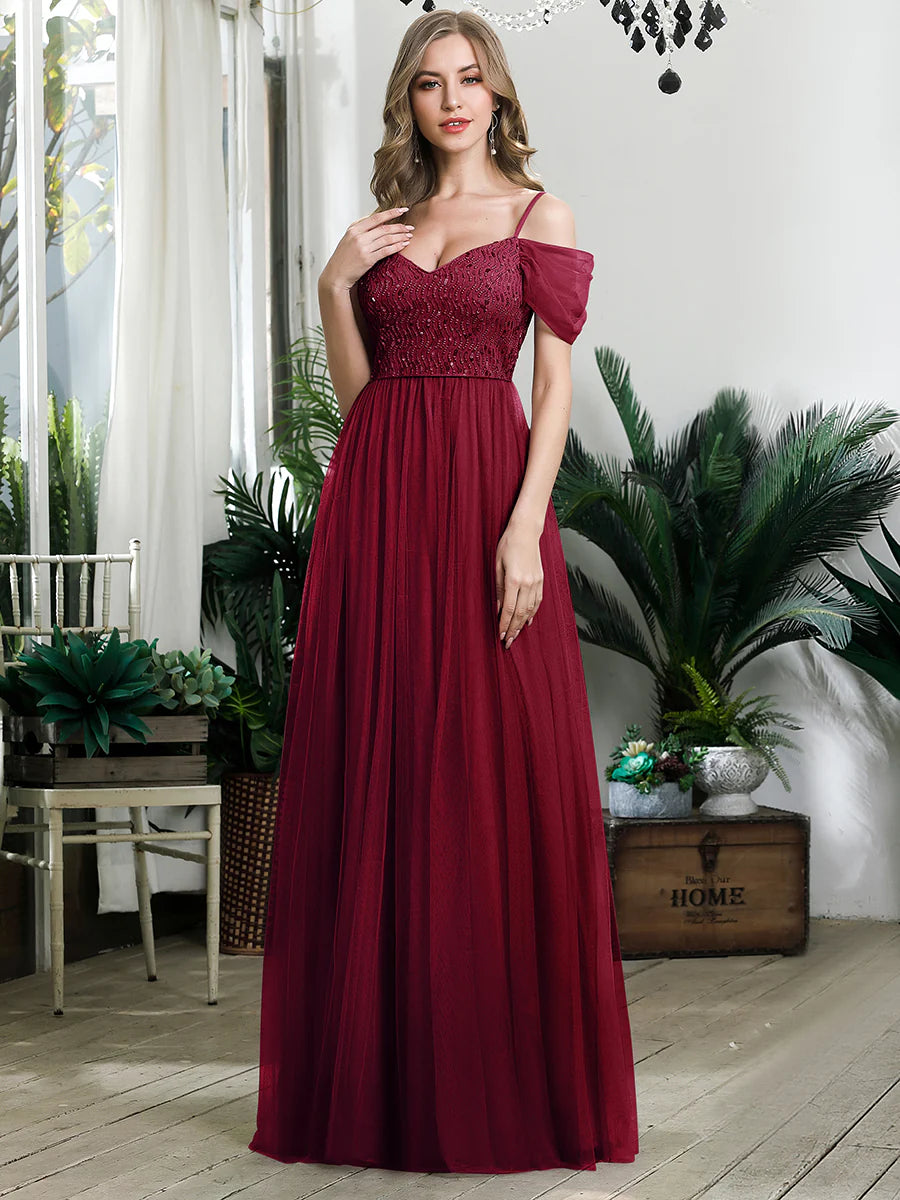 A-Line Sweetheart Neckline Ruffle Sleeve Tulle Bridesmaid Dress